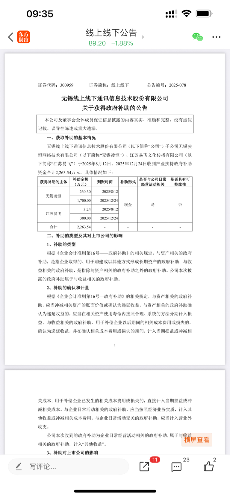 $线上线下(SZ300959)$ 这些补贴去哪了