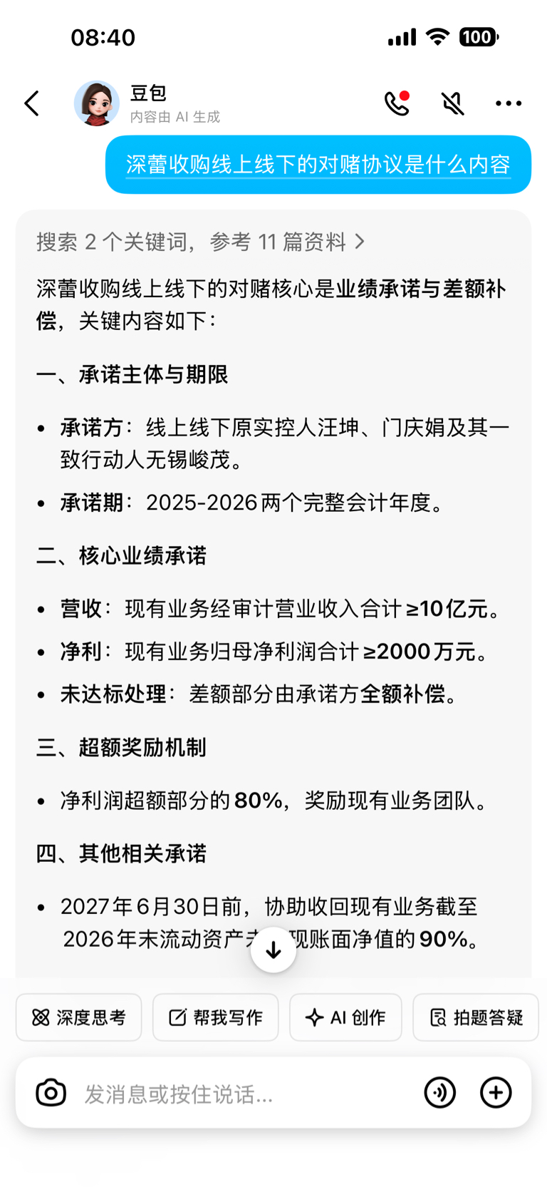 $线上线下(SZ300959)$ 对赌协议内容