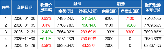 通业科技:融资净偿还211.54万元,融资余额7495.24万元(01-06)