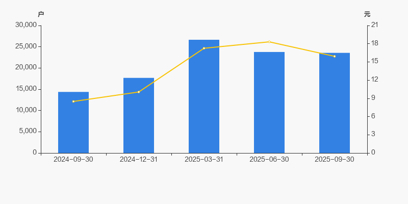 2024年9月30日至今,公司股东户数显著大幅增长,区间涨幅达63.96%。2024年9月30日至2025年9月30日区间股价上涨87.51%。