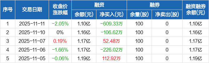 深水海纳:融资净偿还609.33万元,融资余额1.1亿元(11-11)