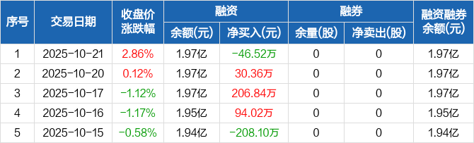 中金辐照:融资净偿还46.52万元,融资余额1.97亿元(10-21)
