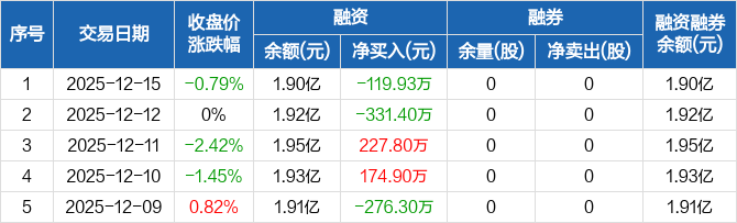 中金辐照:融资净偿还119.93万元,融资余额1.9亿元(12-15)