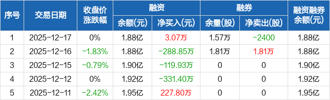 中金辐照:融资净买入3.07万元,融资余额1.88亿元(12-17)
