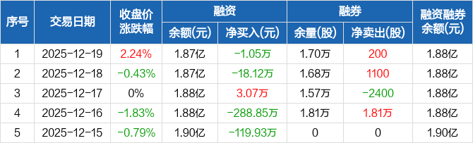 中金辐照:融资净偿还1.05万元,融资余额1.87亿元(12-19)