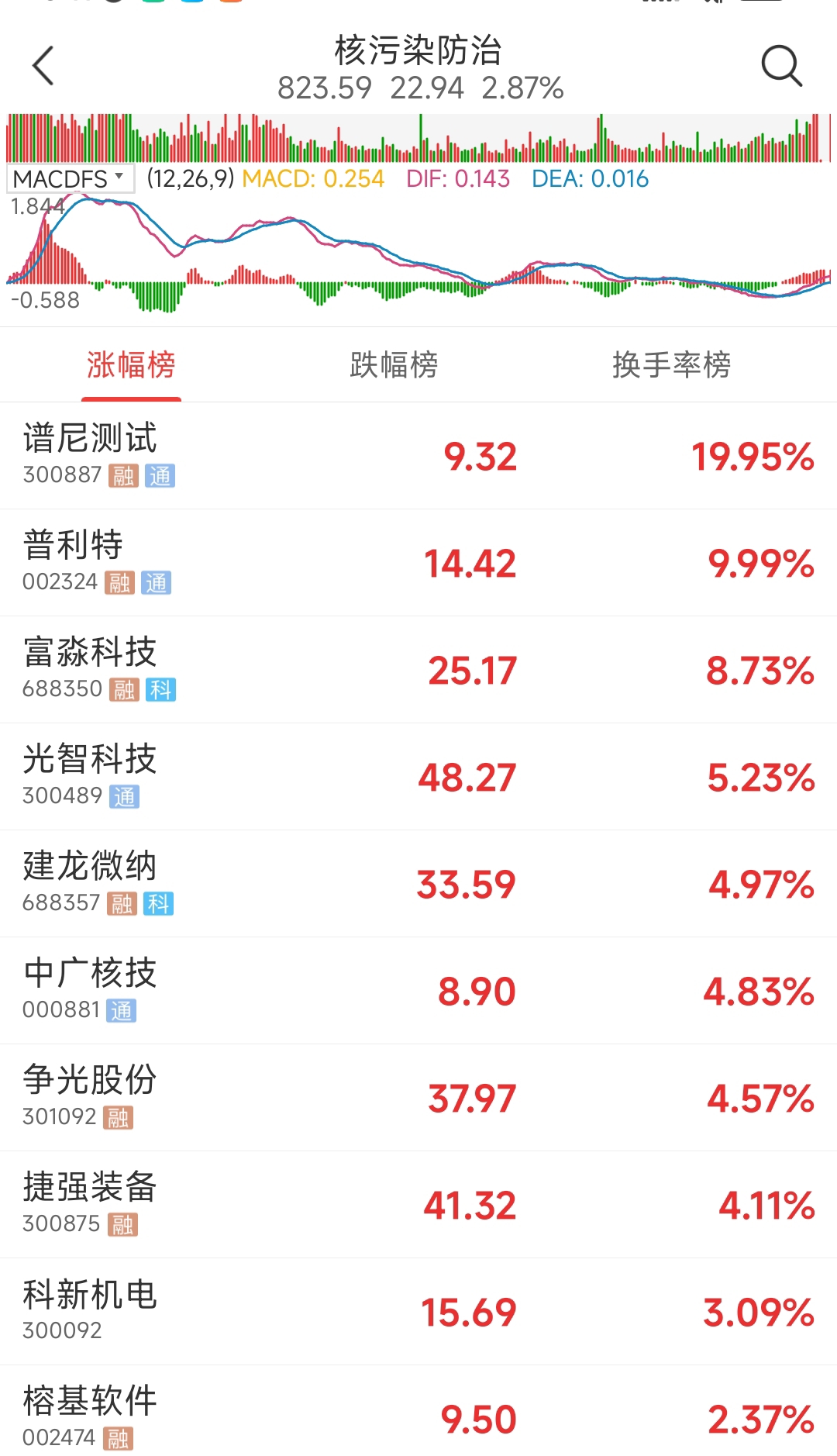 谱尼测试昨天20厘米涨停中金辐照今天补张?核污染防治概念是下一个风口?