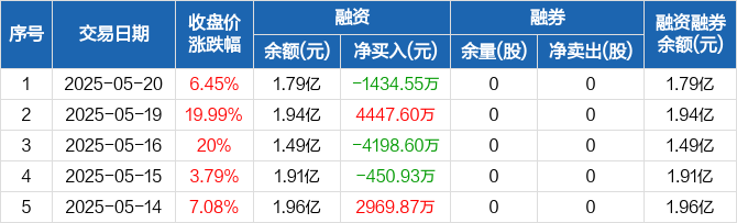 中洲特材:融资净偿还1434.55万元,融资余额1.79亿元(05-20)