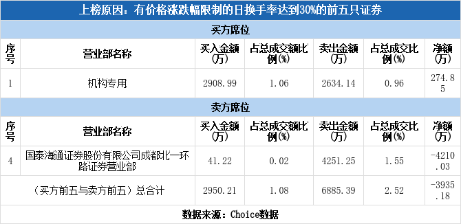 多主力现身龙虎榜,中洲特材上涨2.93%(10-10)