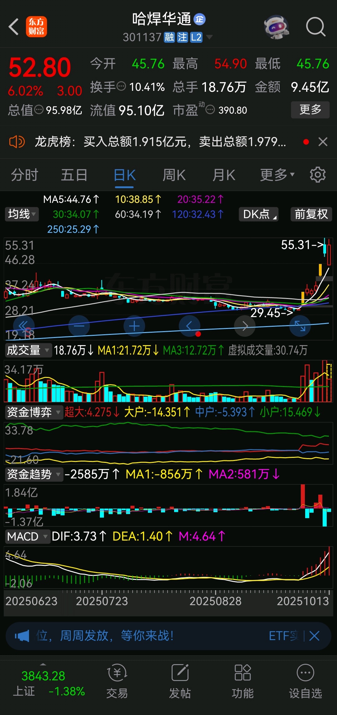 $中洲特材(SZ300963)$ 中洲感觉并不是核电的标杆,分时上看,依旧是$哈焊华通(SZ301137)$ 从绿盘首先主动拉升后,中洲才敢拉升进攻,中洲涨的多因为位置低,哈焊是历史新高,但绝对是标杆,弹性核电龙头就是哈焊,都看他脸色