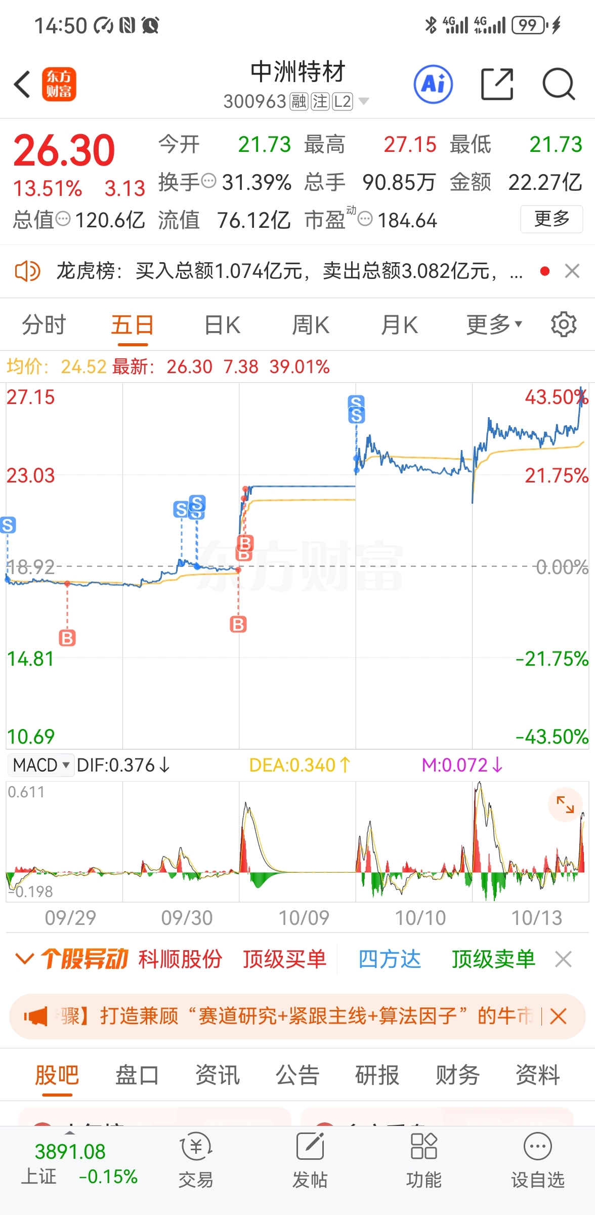 $中洲特材(SZ300963)$ 悔恨啊!当初挣了1万多点点,清仓了,结果这咋还拉呢!