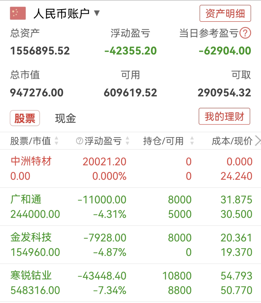 中洲特材~止盈!!今天还亏损状态,我的战友你们呢?