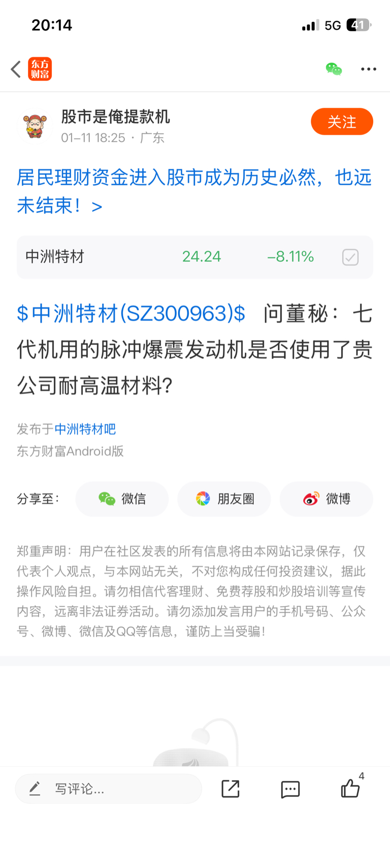 温馨提示: 1.根据《证券法》规定,禁止编造、传播虚假信息或者误导性信息,扰乱证券市场;2.用户在本社区发表的所有资料、言论等仅代表个人观点,与本网站立场无关,不对您构成任何投资建议。用户应基于自己的独立判断,自行决定证券投资并承担相应风险。《东方财富社区管理规定》