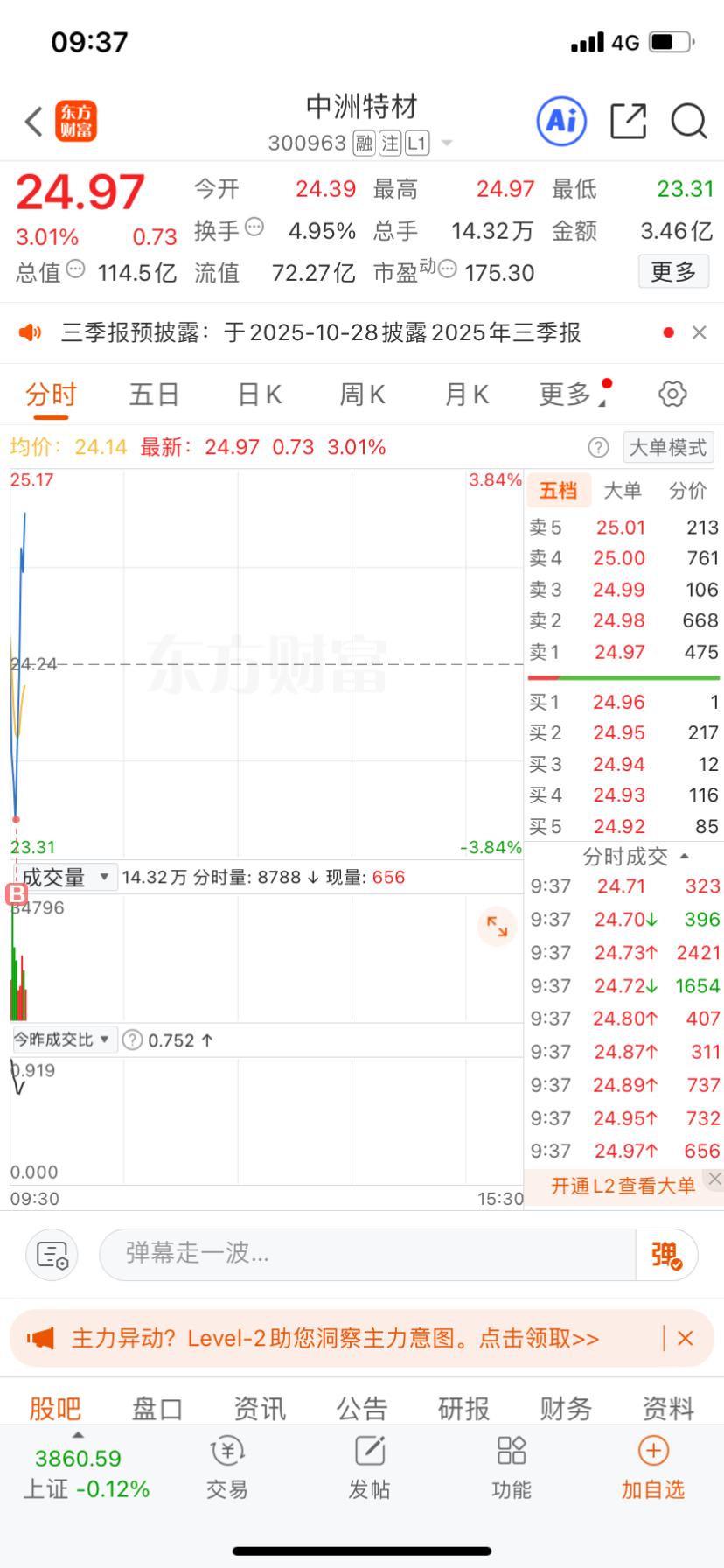开盘介入$中洲特材(SZ300963)$ 值得期待#强势机会# #实盘记录# #投资干货# #投资随笔#