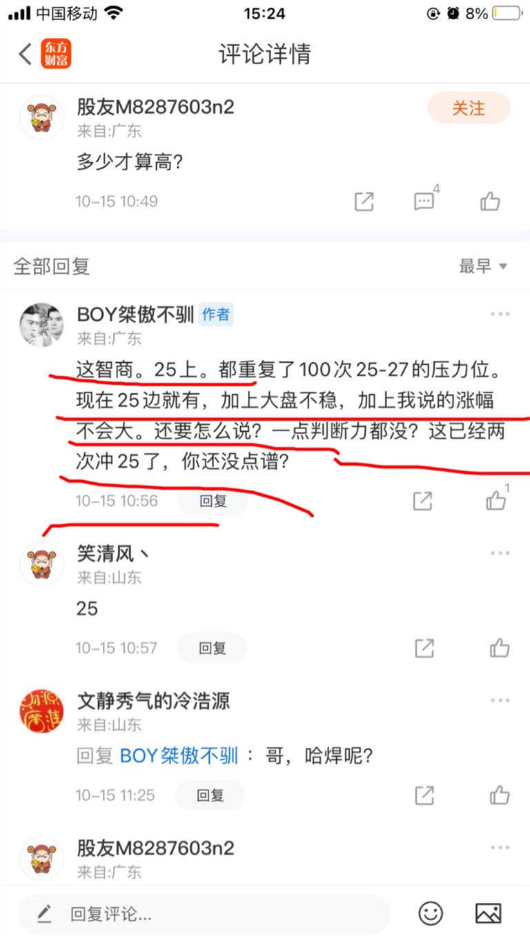 前天晚上提醒昨天25冲高走,昨天早盘又发帖重申了一次,避开了今天下跌。这次是出利