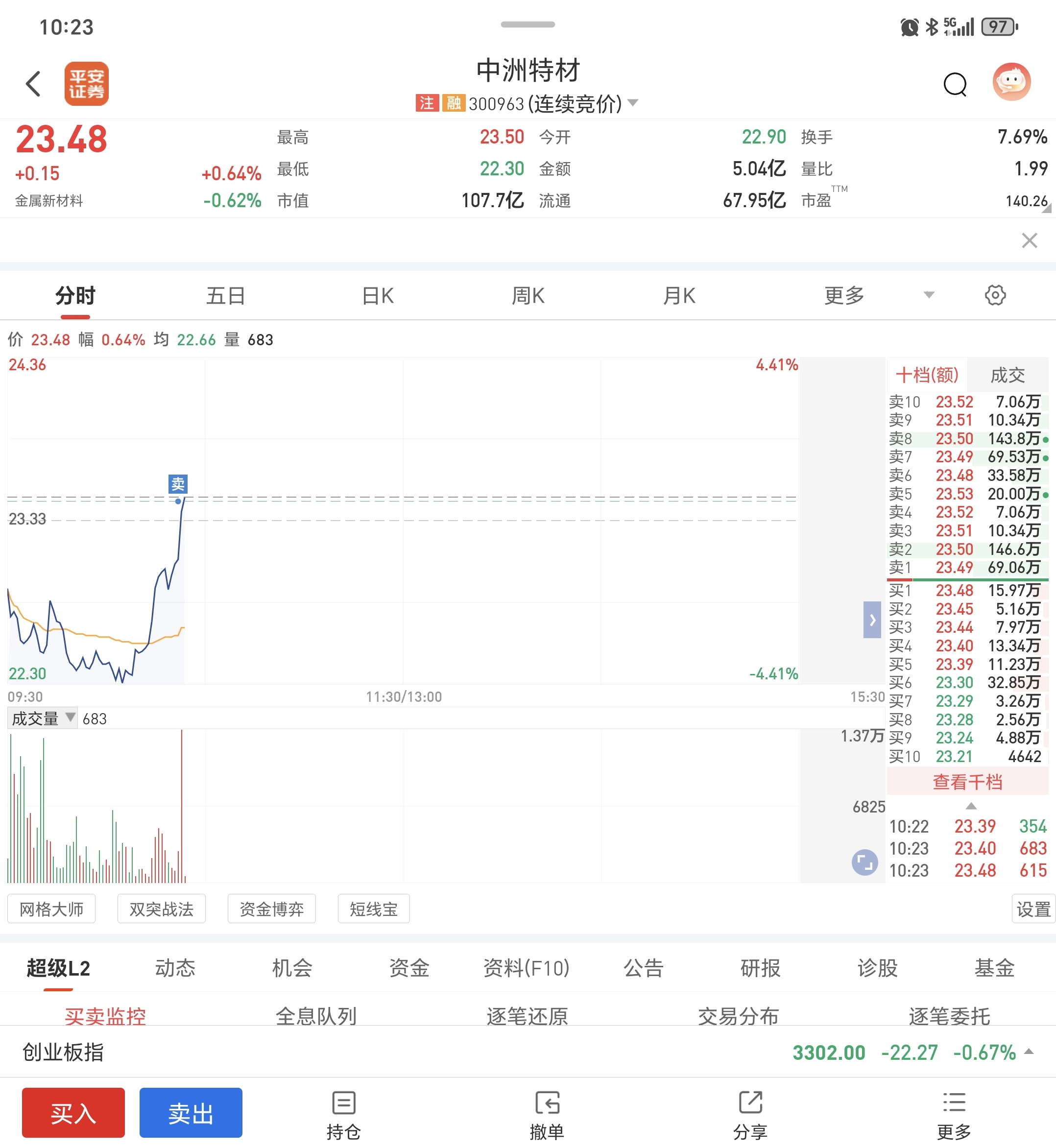 $中洲特材(SZ300963)$ 可能是卖飞了,红卖就可以了