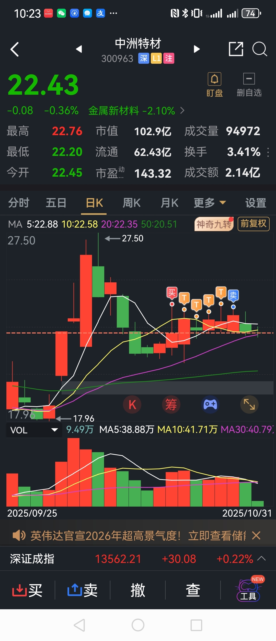 $中洲特材(SZ300963)$ 这下车的位置确实感觉没毛病
