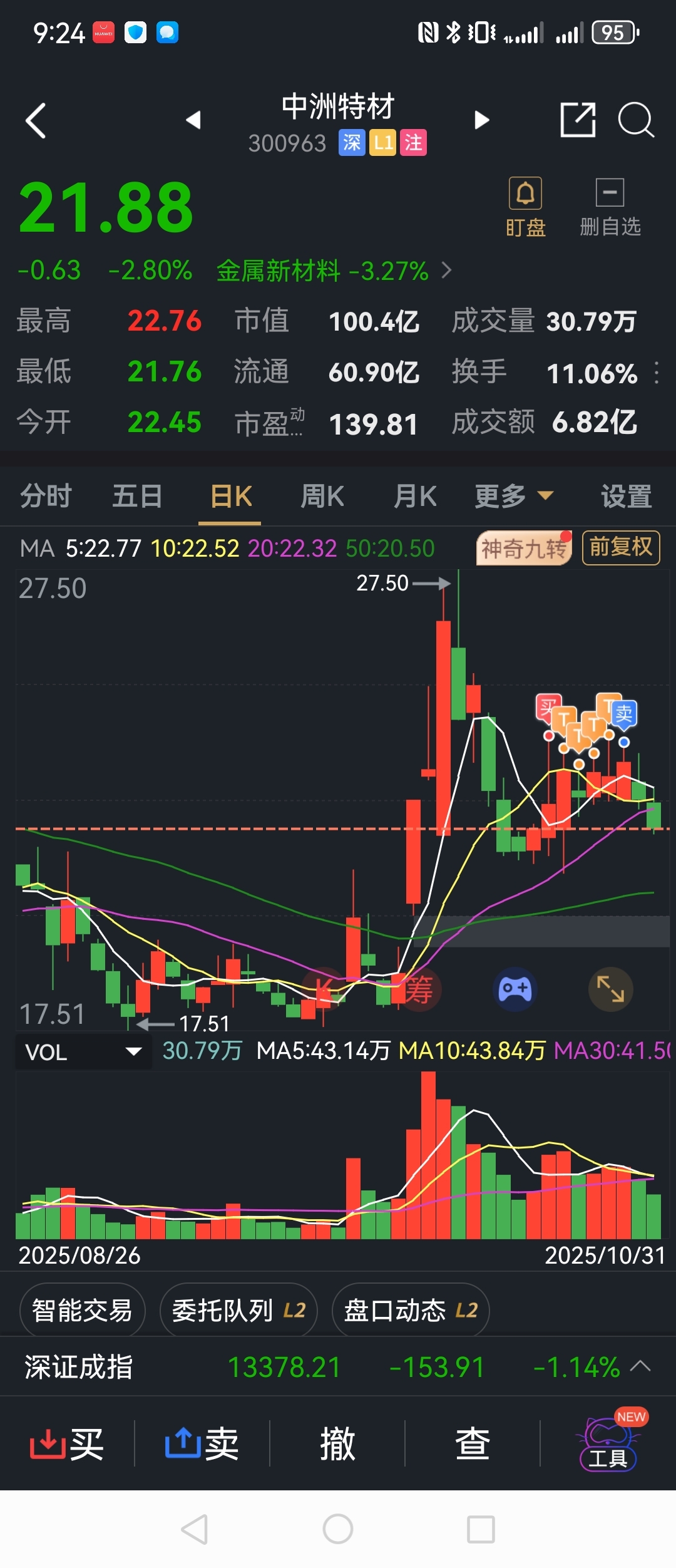 $中洲特材(SZ300963)$ 没跑的话11月准备挨刀子了