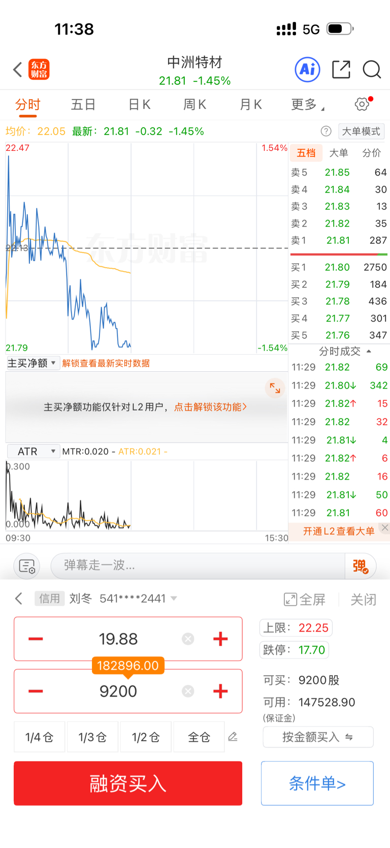 $中洲特材(SZ300963)$ 每天都在挂这个价位买,总有一天回成交的兄弟们