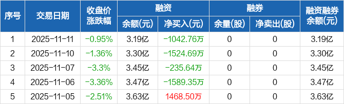 中洲特材:连续4日融资净偿还累计4392.45万元(11-11)