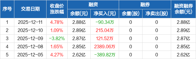 中洲特材:融资净偿还90.34万元,融资余额2.88亿元(12-11)