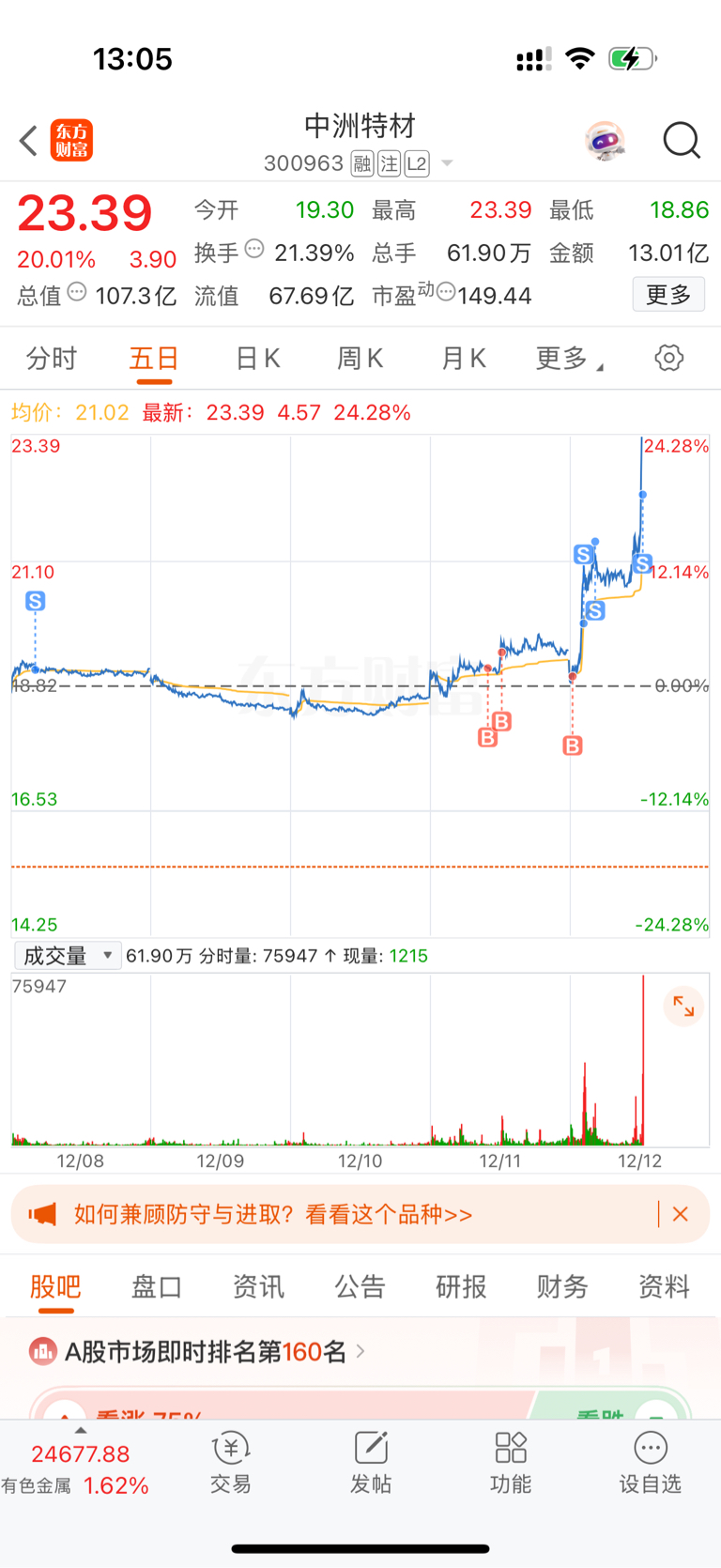 $中洲特材(SZ300963)$ 虽然卖飞了,仍然感谢主力