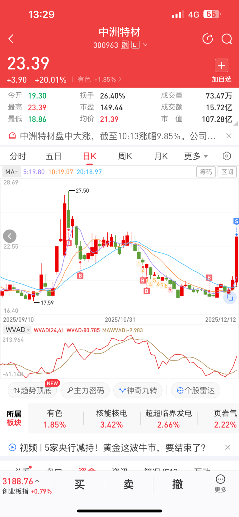 $中洲特材(SZ300963)$ 底部一定要加仓,一天回本。还赚了,减了1/3,要不要买回来?