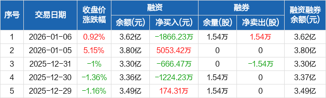 中洲特材:融资净偿还1866.23万元,融资余额3.62亿元(01-06)