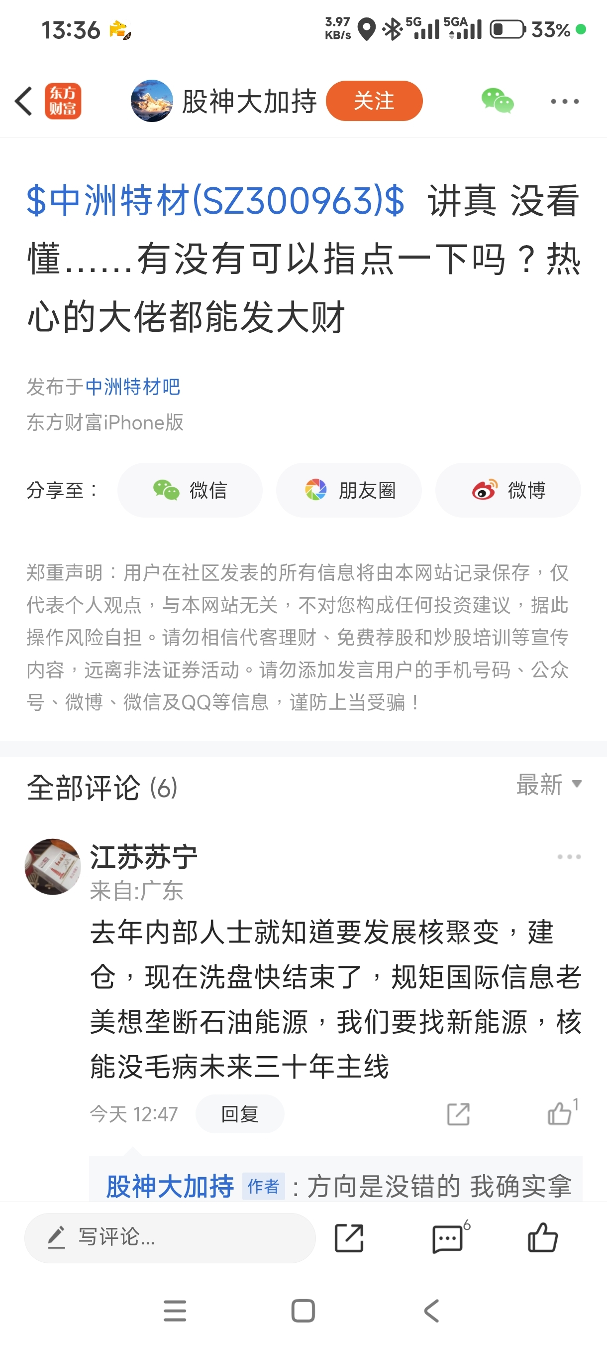 温馨提示: 1.根据《证券法》规定,禁止编造、传播虚假信息或者误导性信息,扰乱证券市场;2.用户在本社区发表的所有资料、言论等仅代表个人观点,与本网站立场无关,不对您构成任何投资建议。用户应基于自己的独立判断,自行决定证券投资并承担相应风险。《东方财富社区管理规定》