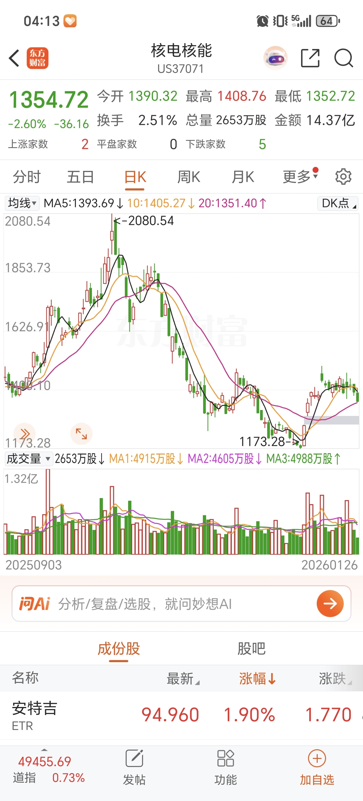 美股核能暴跌,星期二中洲特材至少跌5个点