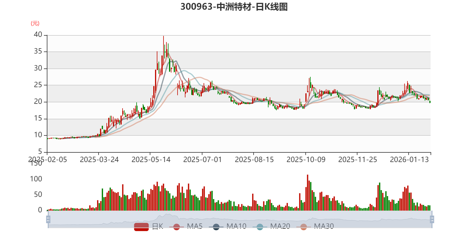 中证智能财讯中洲特材(300963)1月30日晚间披露2025年度业绩预告,预计2025年归母净利润5000万元至6000万元,同比下降37.15%-47.63%;扣非净利润预计4600万元-5300万元,同比下降41.38%-49.12%。以1月30日收盘价计算,中洲特材目前市盈率(TTM)约为151.43倍-181.71倍,市净率(LF)约8.23倍,市销率(TTM)约9.5倍。