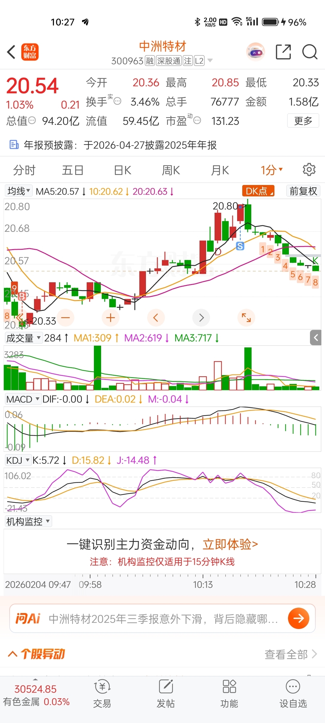 $中洲特材(SZ300963)$ 单看这个买卖点,有点顶级操盘手的赶脚