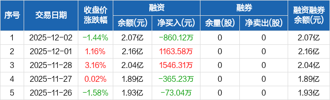 本川智能:融资净偿还860.12万元,融资余额2.07亿元(12-02)