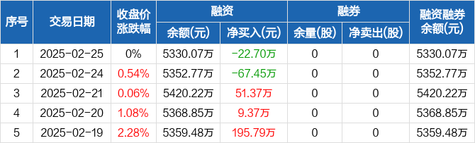 共同药业:融资净偿还22.7万元,融资余额5330.07万元(02-25)