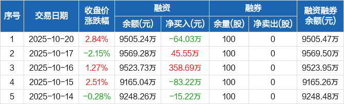 共同药业:融资净偿还64.03万元,融资余额9505.24万元(10-20)