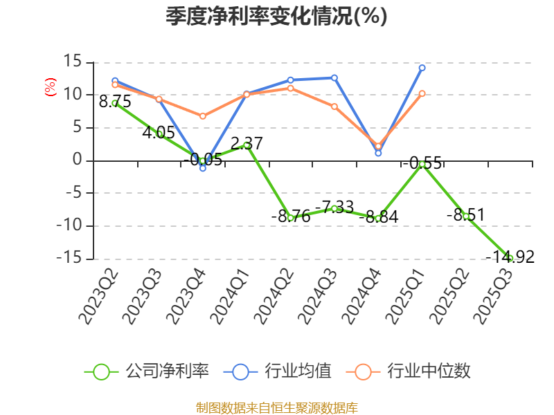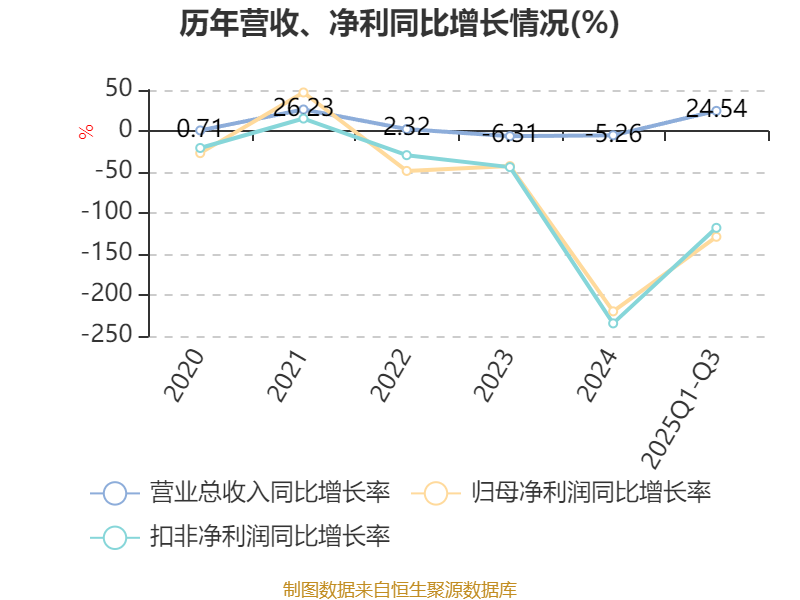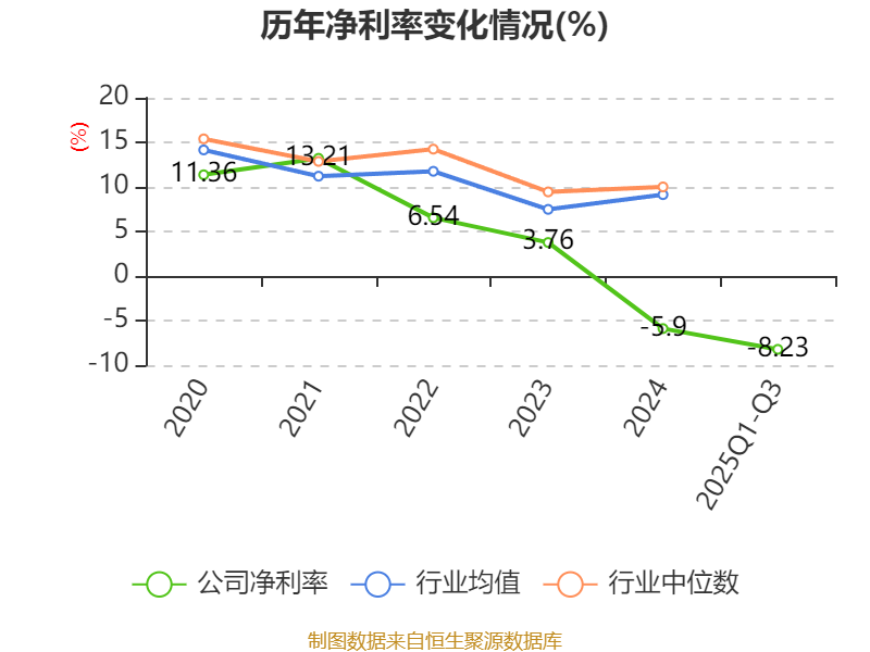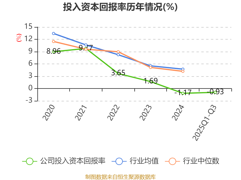 盈利能力方面, 2025年前三季度公司加权平均净资产收益率为-3.61%,同比下降2.11个百分点。公司2025年前三季度投入资本回报率为-0.93%,较上年同期下降0.24个百分点。