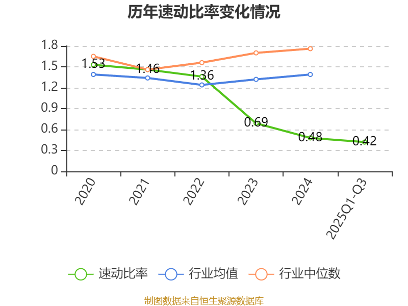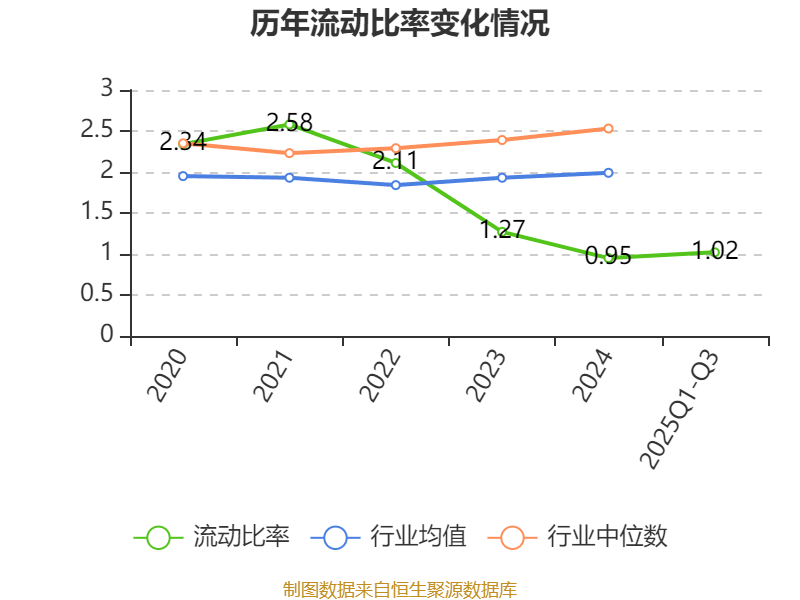 2025年前三季度,公司流动比率为1.02,速动比率为0.42。