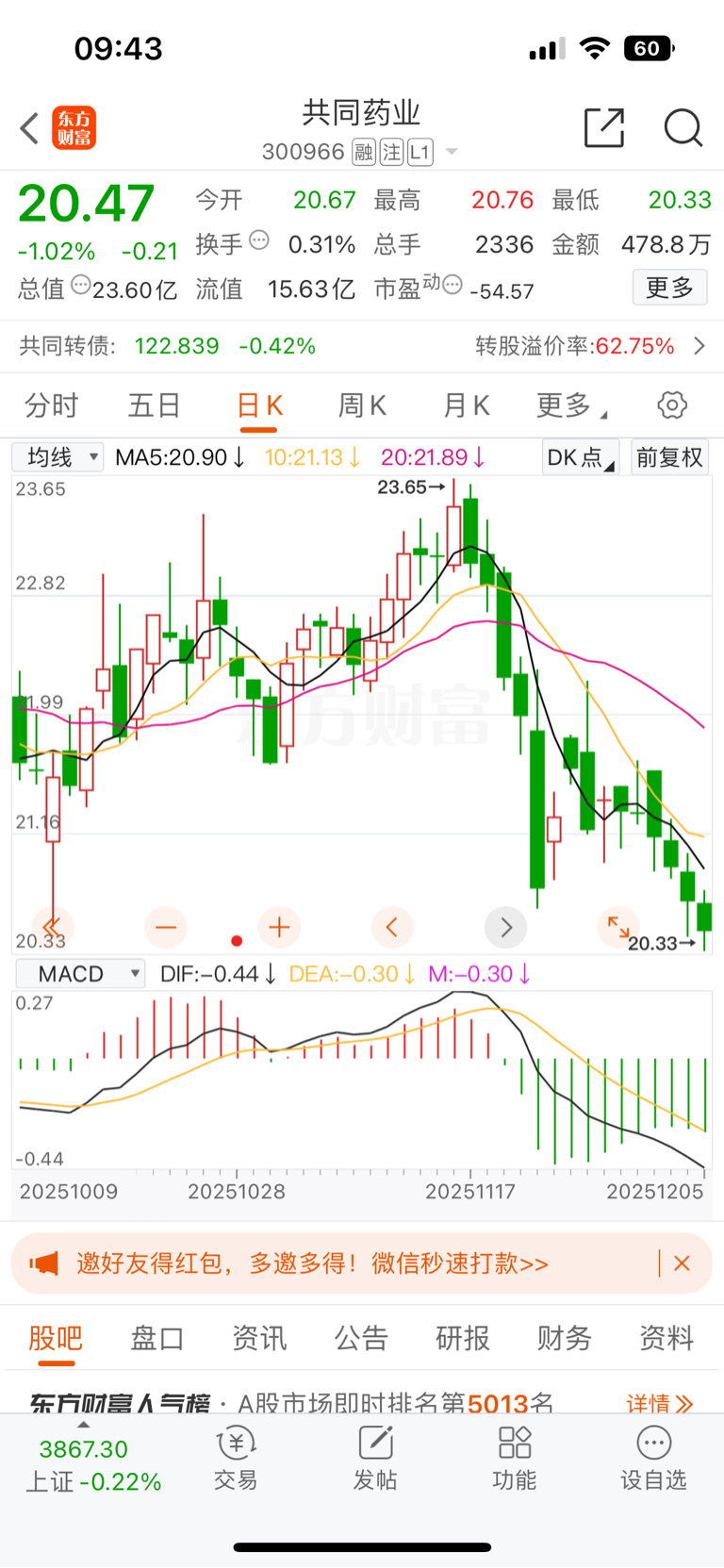 $共同药业(SZ300966)$ 没有丝毫反弹,这公司要费了