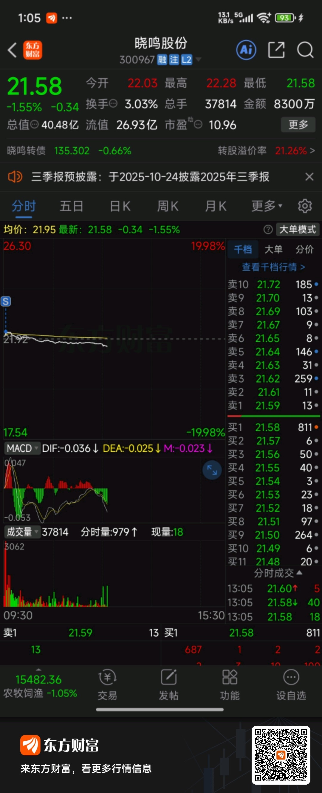 $晓鸣股份(SZ300967)$ 还好跑的快,破位了
