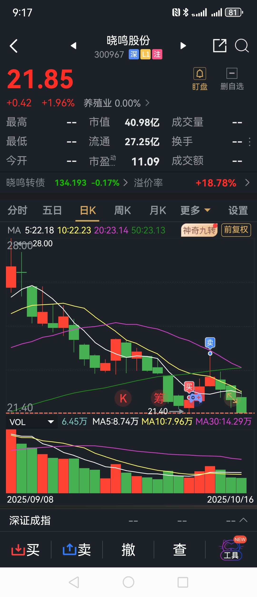 $晓鸣股份(SZ300967)$ 昨天21.4是个大支撑可以重点参考