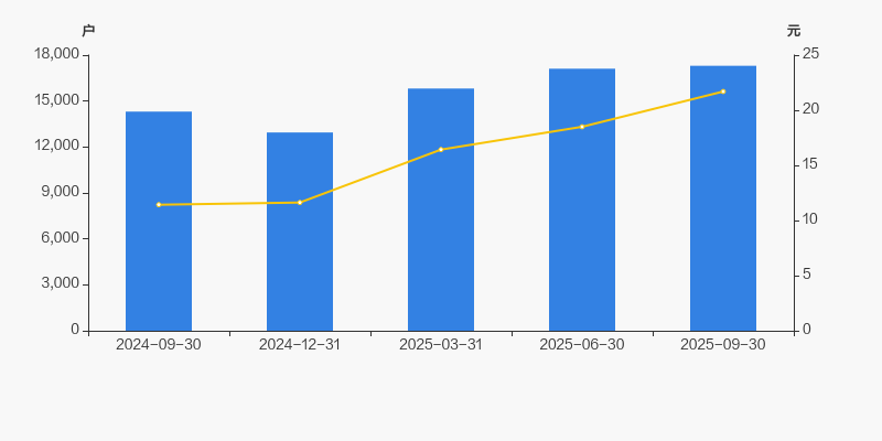 截至2025年9月30日,公司最新总股本为1.88亿股,其中流通股本为1.25亿股。户均持有流通股数量由上期的7292股下降至7211股,户均流通市值15.65万元。