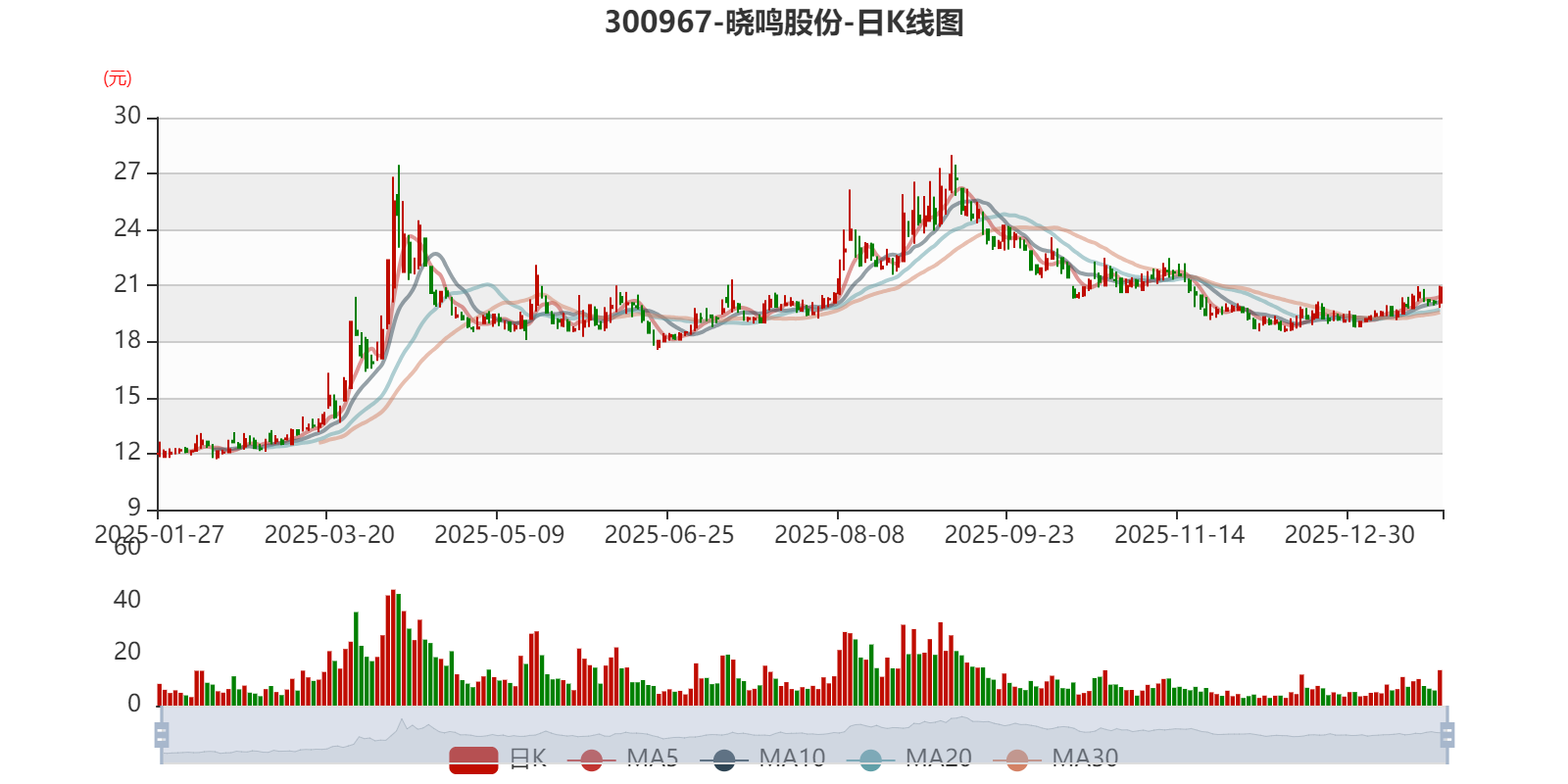 中证智能财讯晓鸣股份(300967)1月26日晚间披露2025年度业绩预告,预计2025年归母净利润7100万元至9200万元,同比增长58.43%-105.3%;扣非净利润预计6550万元至8505万元,同比增长91.85%-149.12%。以1月26日收盘价计算,晓鸣股份目前市盈率(TTM)约为42.61倍-55.21倍,市净率(LF)约4.78倍,市销率(TTM)约2.9倍。