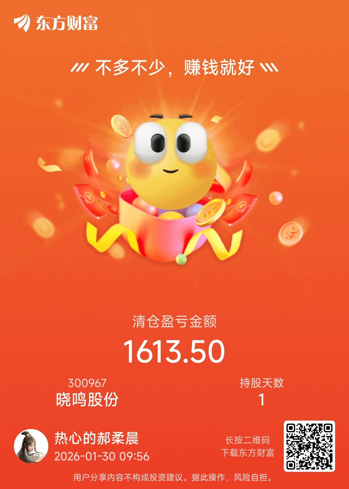 温馨提示: 1.根据《证券法》规定,禁止编造、传播虚假信息或者误导性信息,扰乱证券市场;2.用户在本社区发表的所有资料、言论等仅代表个人观点,与本网站立场无关,不对您构成任何投资建议。用户应基于自己的独立判断,自行决定证券投资并承担相应风险。《东方财富社区管理规定》