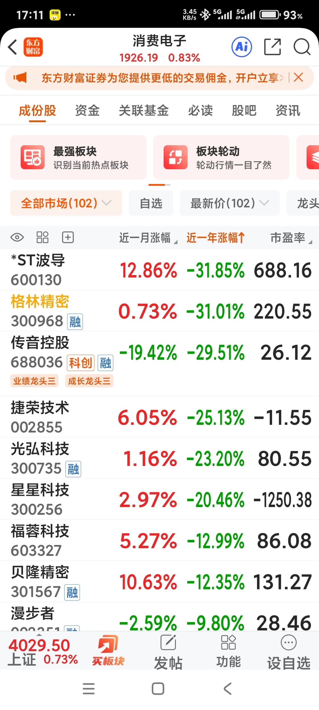 $格林精密(SZ300968)$ 消费电子板块今年跌幅排名