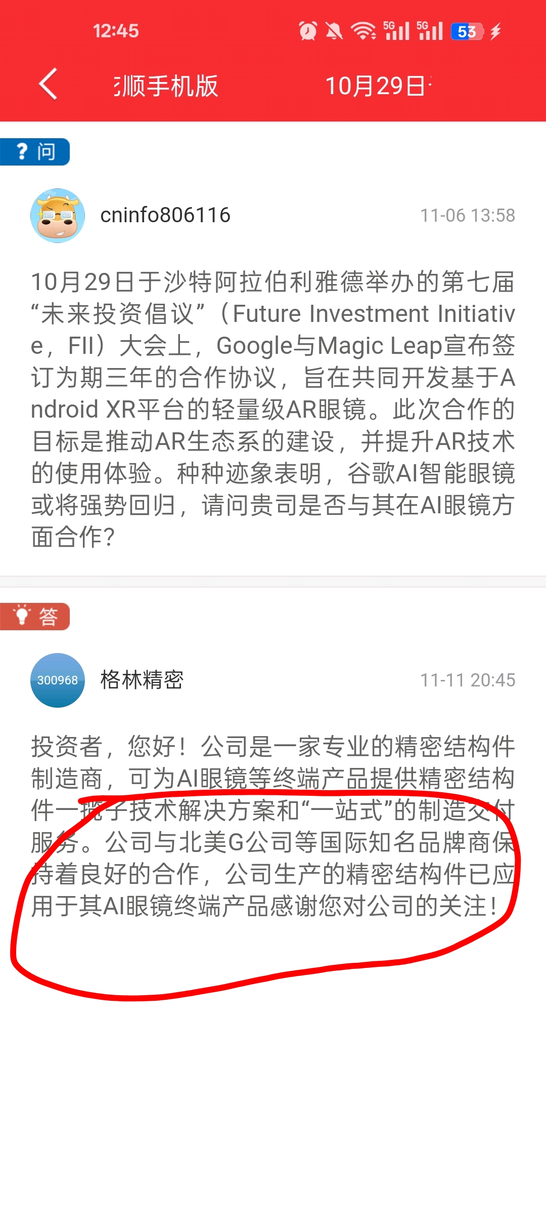$格林精密(SZ300968)$ 股性确实差。查看了董秘近期的回复,实实在在给谷歌供应手机和AI眼镜。长盈精密也是正面回复有给谷歌供货AI眼镜,只能说主力行为。毕竟那边是大屁股,这边是量化加喜欢做T的散户。