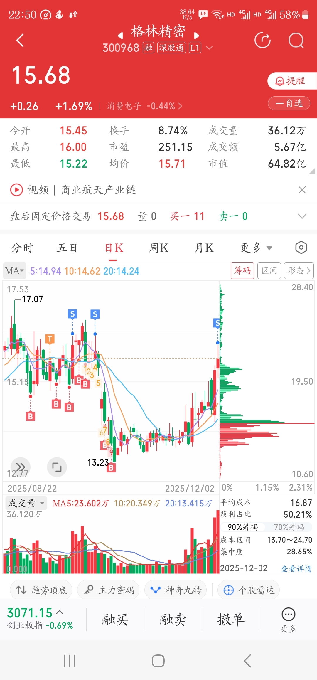 难得涨了好几天,应该要回调了,就怕又被套,早点跑路,留下的朋友发