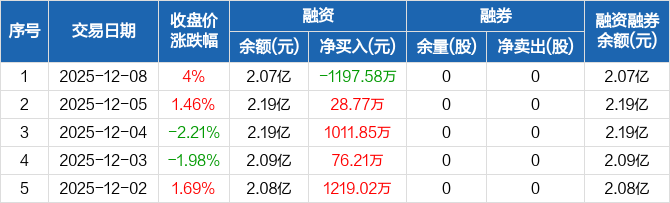 格林精密:融资净偿还1197.58万元,融资余额2.07亿元(12-08)