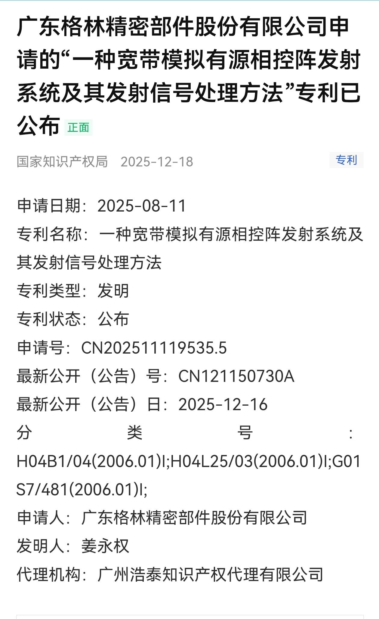 $格林精密(SZ300968)$ 又有新专利获批