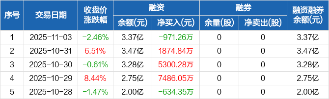 恒帅股份:融资净偿还971.26万元,融资余额3.37亿元(11-03)