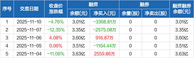 恒帅股份:融资净偿还3368.81万元,融资余额3.01亿元(11-10)