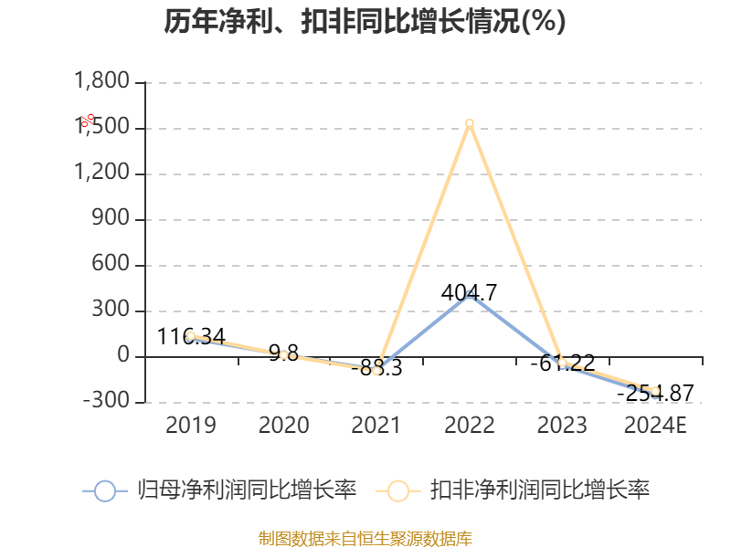 中证智能财讯华绿生物(300970)1月24日晚间披露2024年度业绩预告,预计2024年归母净利润亏损3800万元至5600万元,上年同期盈利3034.89万元;扣非净利润亏损4000万元至5800万元,上年同期盈利3805.65万元。以1月24日收盘价计算,华绿生物目前市盈率(TTM)约为-25.2倍至-37.14倍,市净率(LF)约0.94倍,市销率(TTM)约1.44倍。